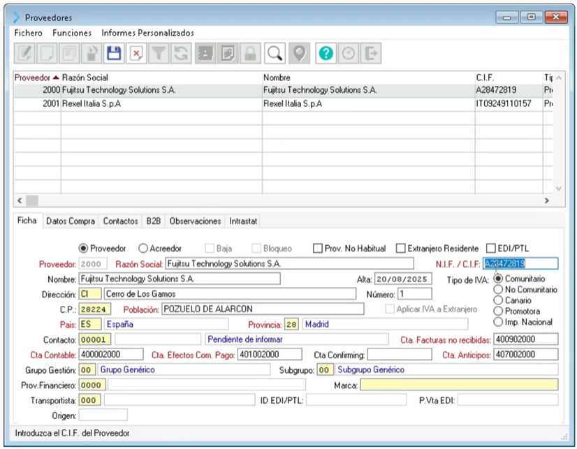Mejora destacada: Comprobación online de CIF censados y consistencia de tipos de IVA en clientes y proveedores vía API AEAT.